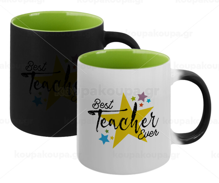 Teacher super star!!!, Κούπα Μαγική εσωτερικό πράσινο, κεραμική 330ml που αλλάζει χρώμα με το ζεστό ρόφημα
