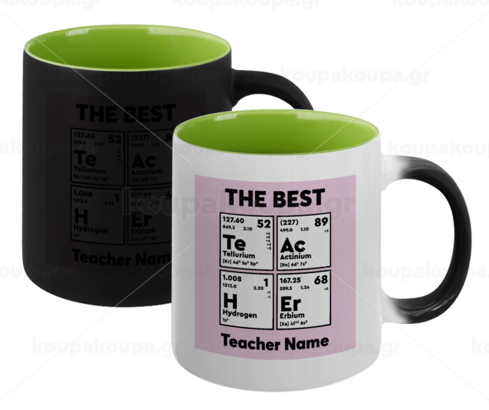 THE BEST Teacher chemical symbols, Κούπα Μαγική εσωτερικό πράσινο, κεραμική 330ml που αλλάζει χρώμα με το ζεστό ρόφημα
