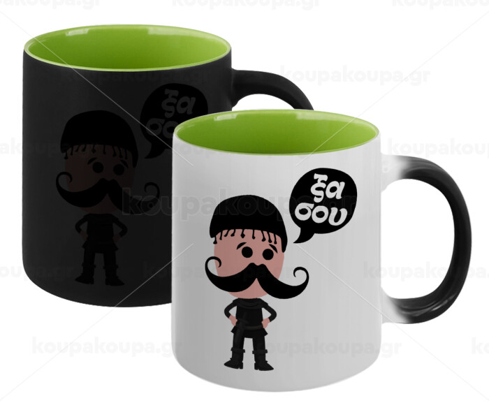 Κρητικός "Ξα σου", Κούπα Μαγική εσωτερικό πράσινο, κεραμική 330ml που αλλάζει χρώμα με το ζεστό ρόφημα