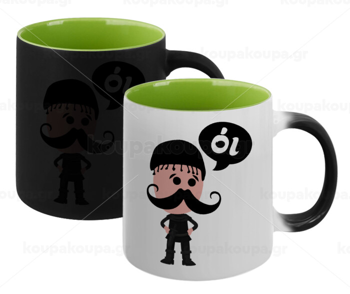 Κρητικός "Οι", Κούπα Μαγική εσωτερικό πράσινο, κεραμική 330ml που αλλάζει χρώμα με το ζεστό ρόφημα