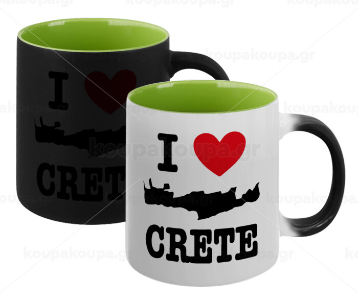 I Love Crete, Κούπα Μαγική εσωτερικό πράσινο, κεραμική 330ml που αλλάζει χρώμα με το ζεστό ρόφημα