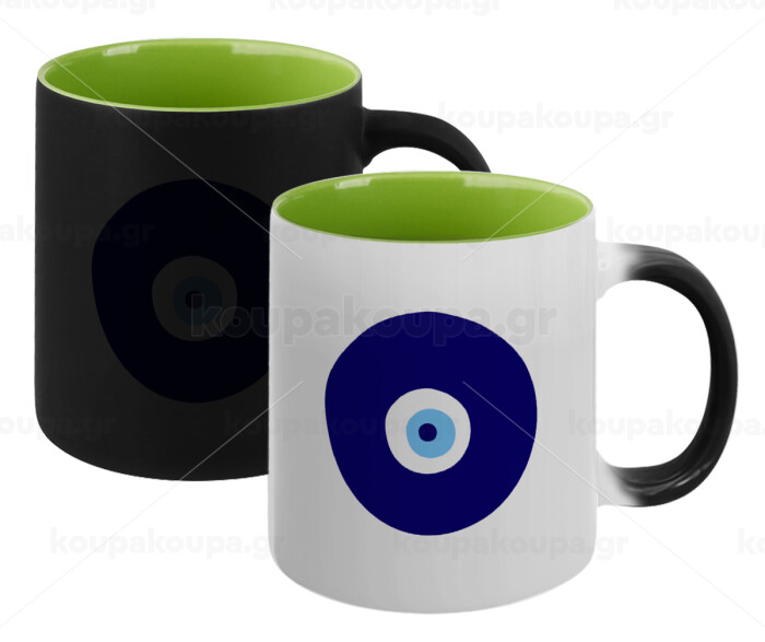 Χάντρα γαλαζιά, Κούπα Μαγική εσωτερικό πράσινο, κεραμική 330ml που αλλάζει χρώμα με το ζεστό ρόφημα