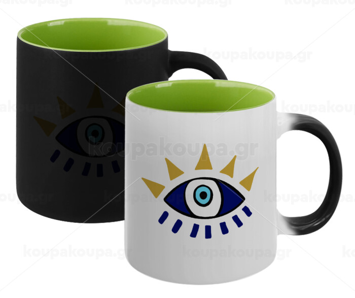 blue evil eye, Κούπα Μαγική εσωτερικό πράσινο, κεραμική 330ml που αλλάζει χρώμα με το ζεστό ρόφημα