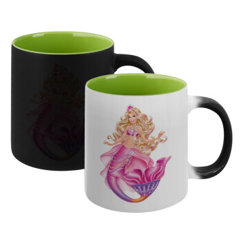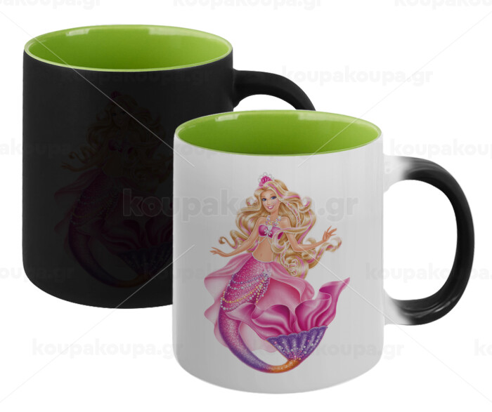 Barbie mermaid blue, Κούπα Μαγική εσωτερικό πράσινο, κεραμική 330ml που αλλάζει χρώμα με το ζεστό ρόφημα