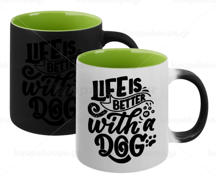 Life is better with a DOG, Κούπα Μαγική εσωτερικό πράσινο, κεραμική 330ml που αλλάζει χρώμα με το ζεστό ρόφημα