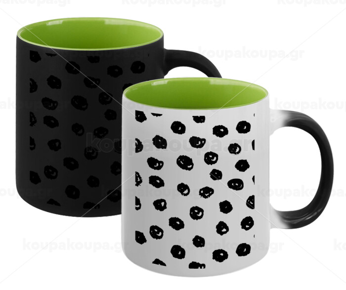 Doodle Dots, Κούπα Μαγική εσωτερικό πράσινο, κεραμική 330ml που αλλάζει χρώμα με το ζεστό ρόφημα