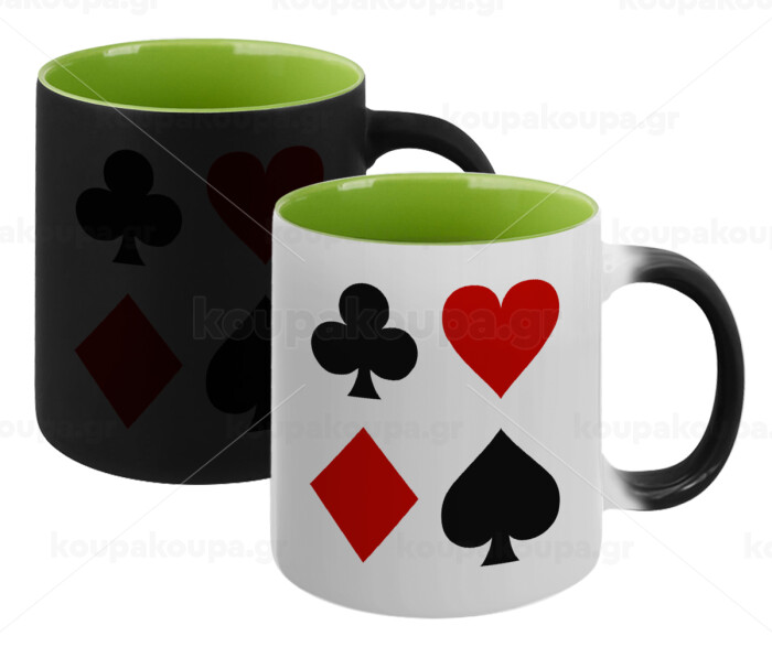 Τραπουλόχαρτα, Κούπα Μαγική εσωτερικό πράσινο, κεραμική 330ml που αλλάζει χρώμα με το ζεστό ρόφημα
