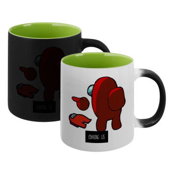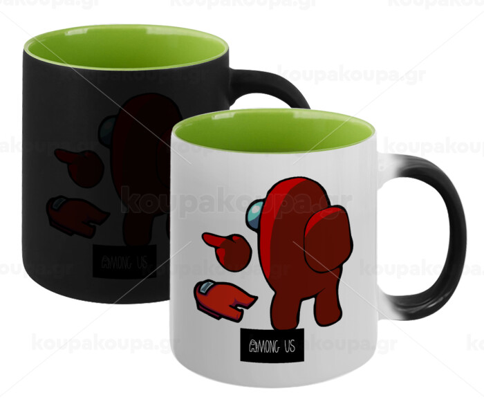 Among US i am impostor..., Κούπα Μαγική εσωτερικό πράσινο, κεραμική 330ml που αλλάζει χρώμα με το ζεστό ρόφημα