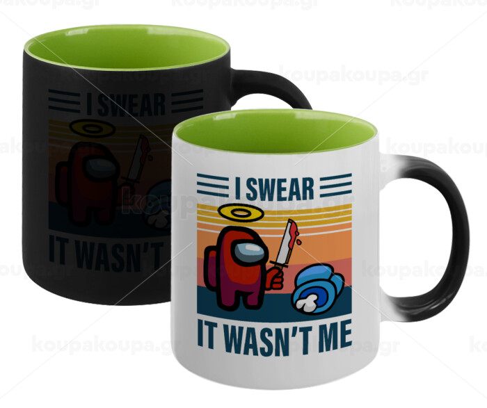 Among us, I swear it wasn't me, Κούπα Μαγική εσωτερικό πράσινο, κεραμική 330ml που αλλάζει χρώμα με το ζεστό ρόφημα