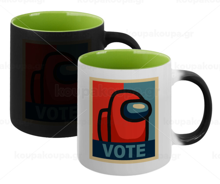 Among US VOTE, Κούπα Μαγική εσωτερικό πράσινο, κεραμική 330ml που αλλάζει χρώμα με το ζεστό ρόφημα