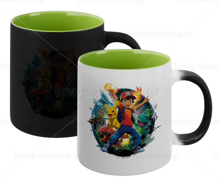 Ash Ketchum & Pikachu, Κούπα Μαγική εσωτερικό πράσινο, κεραμική 330ml που αλλάζει χρώμα με το ζεστό ρόφημα