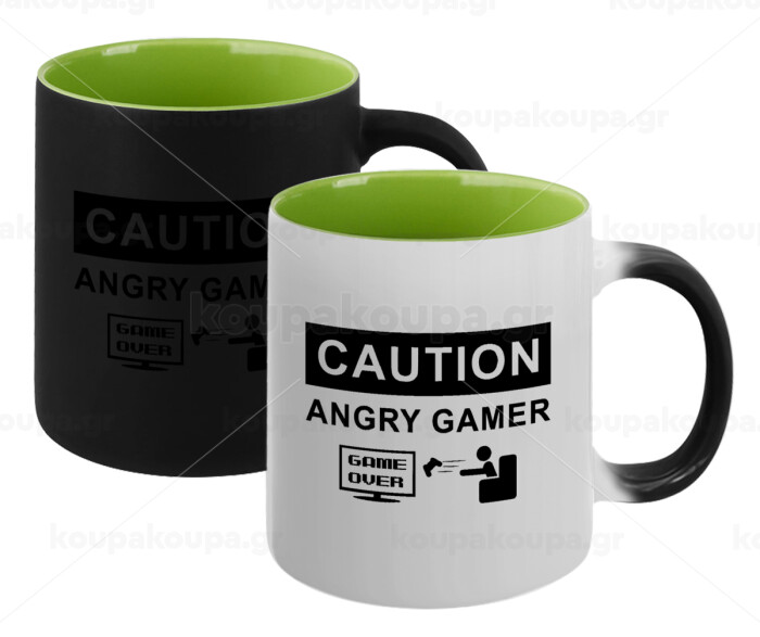 Caution, angry gamer!, Κούπα Μαγική εσωτερικό πράσινο, κεραμική 330ml που αλλάζει χρώμα με το ζεστό ρόφημα