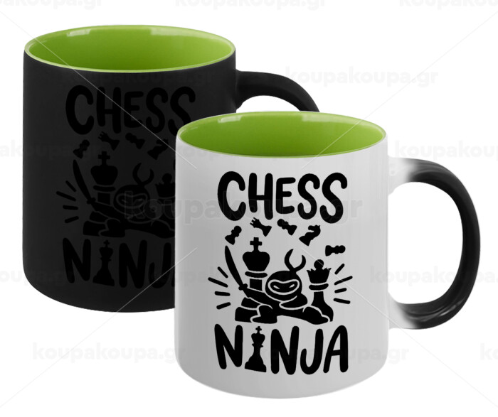 Chess ninja, Κούπα Μαγική εσωτερικό πράσινο, κεραμική 330ml που αλλάζει χρώμα με το ζεστό ρόφημα