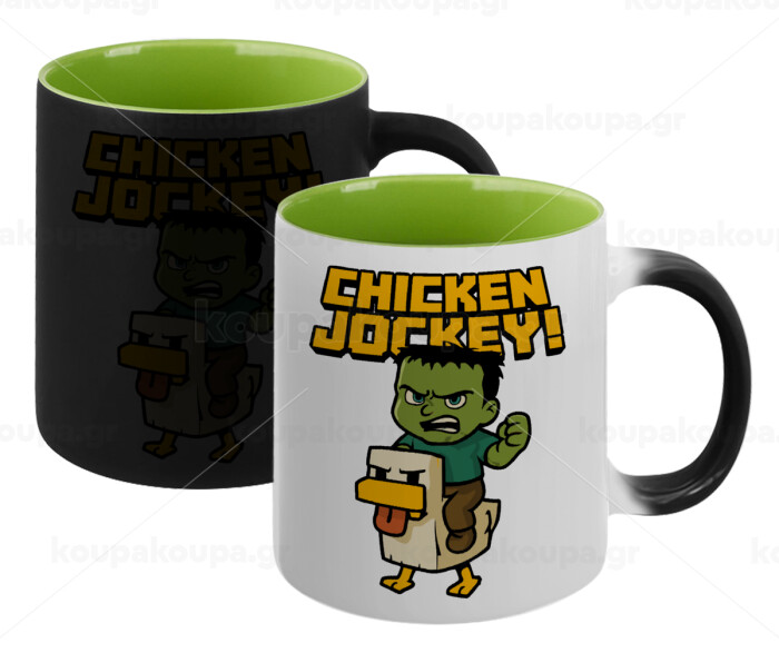 Chicken Jockey, Κούπα Μαγική εσωτερικό πράσινο, κεραμική 330ml που αλλάζει χρώμα με το ζεστό ρόφημα