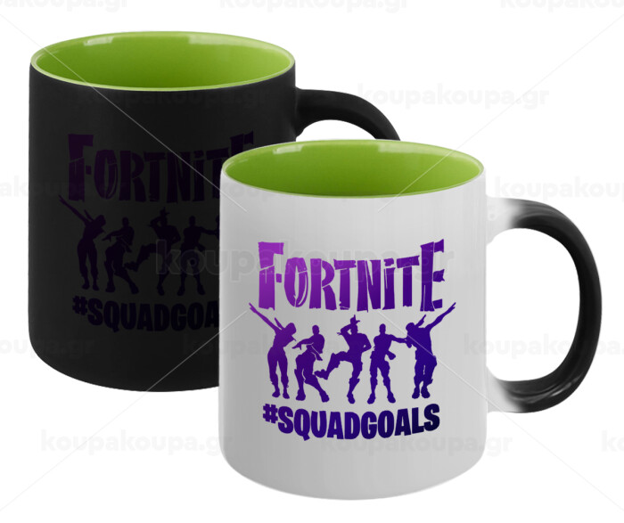 Fortnite #squadgoals, Κούπα Μαγική εσωτερικό πράσινο, κεραμική 330ml που αλλάζει χρώμα με το ζεστό ρόφημα