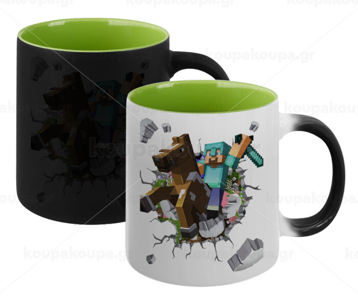 Minecraft brick, Κούπα Μαγική εσωτερικό πράσινο, κεραμική 330ml που αλλάζει χρώμα με το ζεστό ρόφημα