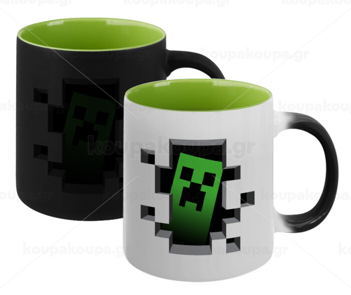 Minecraft creeper, Κούπα Μαγική εσωτερικό πράσινο, κεραμική 330ml που αλλάζει χρώμα με το ζεστό ρόφημα