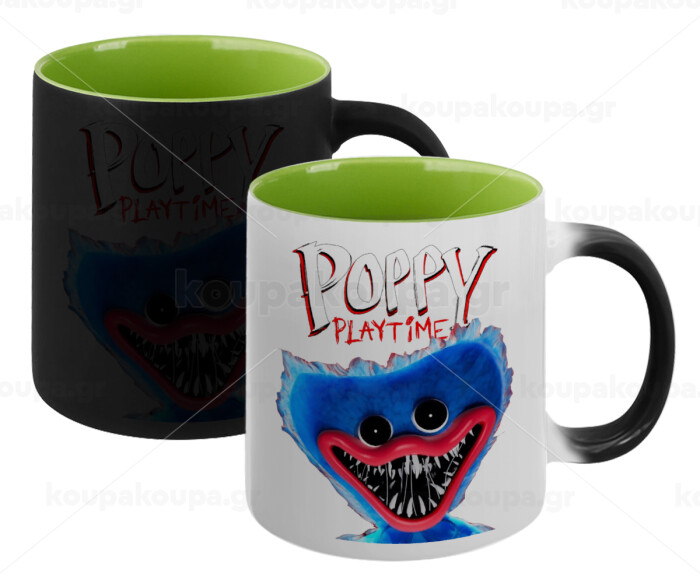 Poppy Playtime Huggy wuggy, Κούπα Μαγική εσωτερικό πράσινο, κεραμική 330ml που αλλάζει χρώμα με το ζεστό ρόφημα