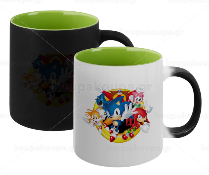 Sonic and friends, Κούπα Μαγική εσωτερικό πράσινο, κεραμική 330ml που αλλάζει χρώμα με το ζεστό ρόφημα