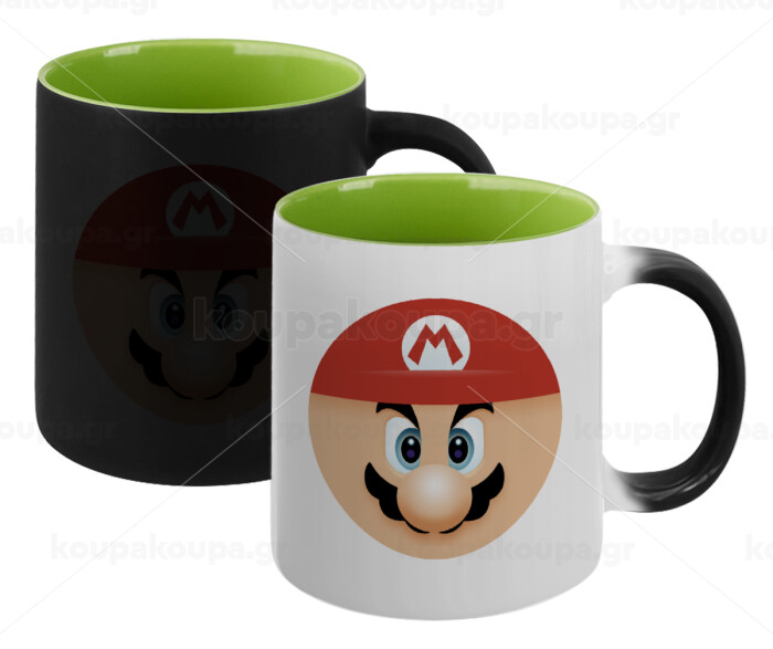 Super mario flat, Κούπα Μαγική εσωτερικό πράσινο, κεραμική 330ml που αλλάζει χρώμα με το ζεστό ρόφημα