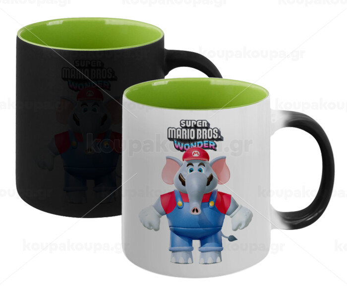 Super mario wonder, Κούπα Μαγική εσωτερικό πράσινο, κεραμική 330ml που αλλάζει χρώμα με το ζεστό ρόφημα