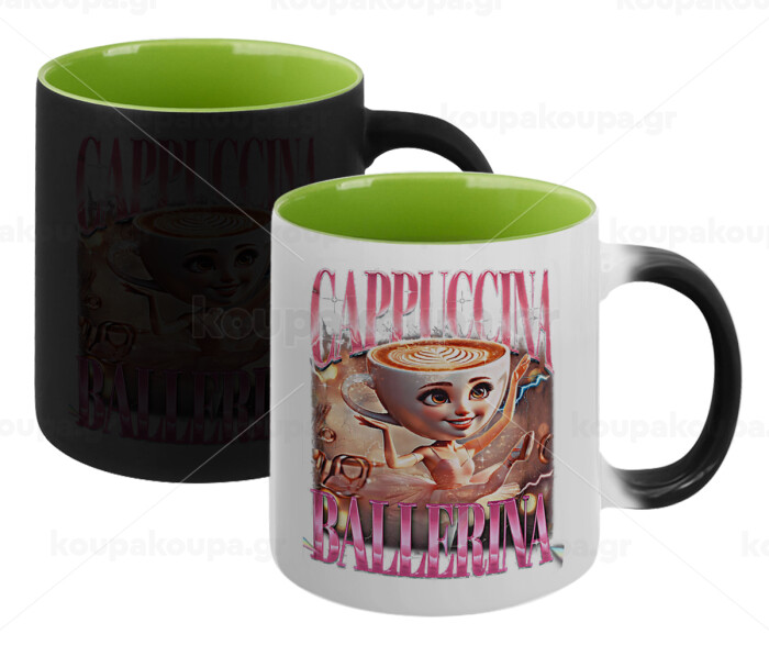 BALLERINA CAPUCHINA FUNK, Κούπα Μαγική εσωτερικό πράσινο, κεραμική 330ml που αλλάζει χρώμα με το ζεστό ρόφημα