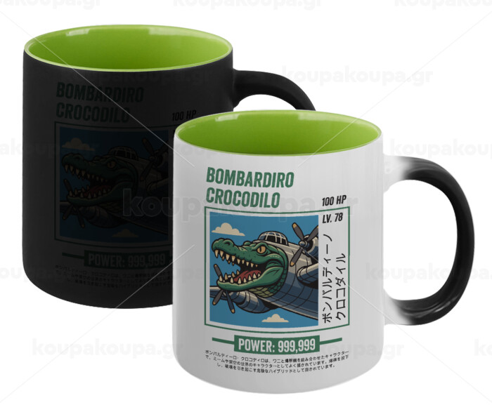 Bombardiro Crocodilo, Κούπα Μαγική εσωτερικό πράσινο, κεραμική 330ml που αλλάζει χρώμα με το ζεστό ρόφημα