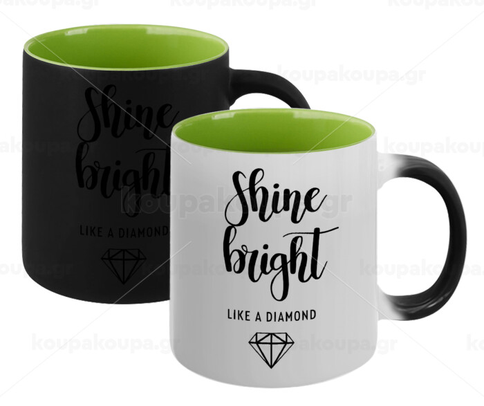 Bright, Shine like a Diamond, Κούπα Μαγική εσωτερικό πράσινο, κεραμική 330ml που αλλάζει χρώμα με το ζεστό ρόφημα