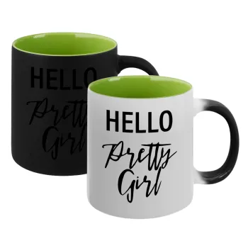 Hello pretty girl, Κούπα Μαγική εσωτερικό πράσινο, κεραμική 330ml που αλλάζει χρώμα με το ζεστό ρόφημα