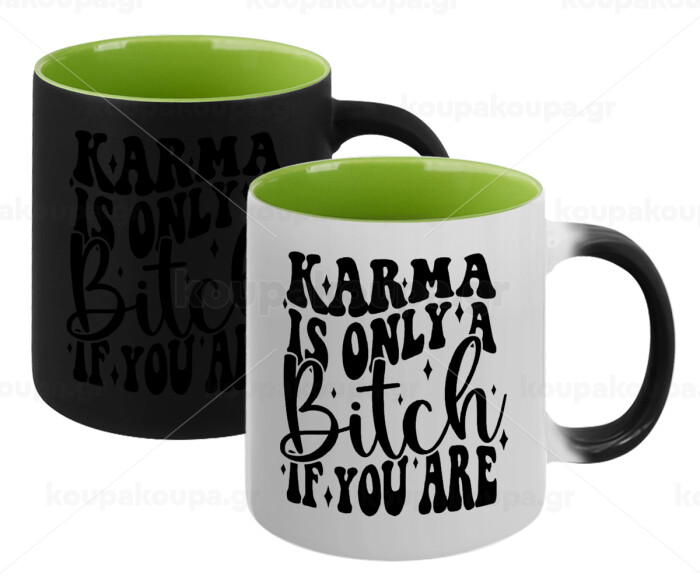 Karma is Only A Bitch if You Are, Κούπα Μαγική εσωτερικό πράσινο, κεραμική 330ml που αλλάζει χρώμα με το ζεστό ρόφημα