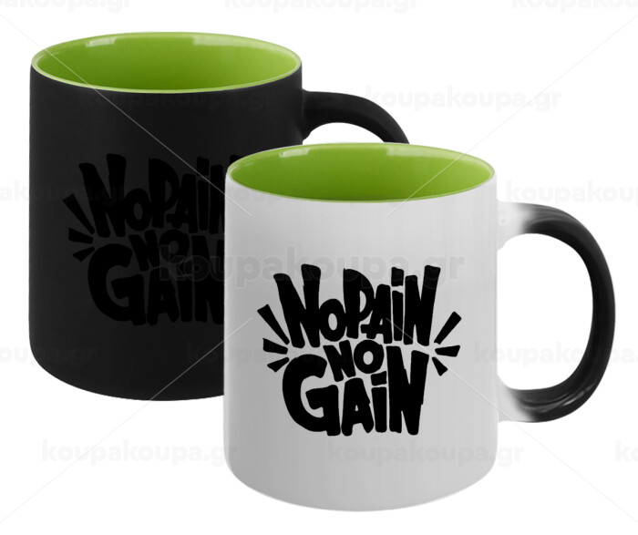 No pain no gain, Κούπα Μαγική εσωτερικό πράσινο, κεραμική 330ml που αλλάζει χρώμα με το ζεστό ρόφημα
