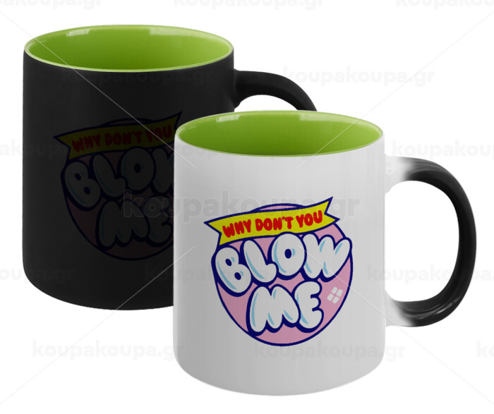 Why Don't You Blow Me Funny, Κούπα Μαγική εσωτερικό πράσινο, κεραμική 330ml που αλλάζει χρώμα με το ζεστό ρόφημα