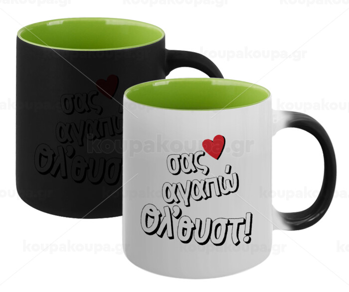 Σας αγαπώ όλ'ουστ!, Κούπα Μαγική εσωτερικό πράσινο, κεραμική 330ml που αλλάζει χρώμα με το ζεστό ρόφημα