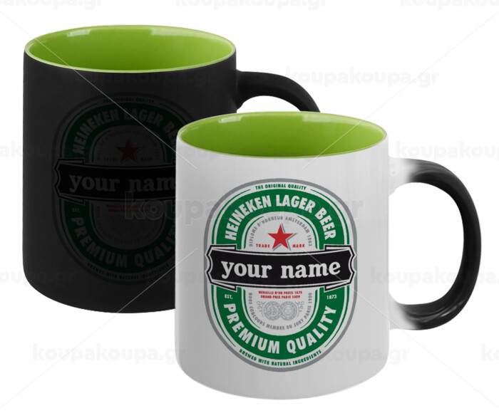 Heineken with name, Κούπα Μαγική εσωτερικό πράσινο, κεραμική 330ml που αλλάζει χρώμα με το ζεστό ρόφημα