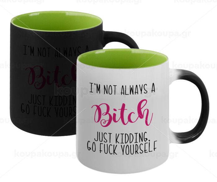 I'm not always a bitch, just kidding go f..k yourself , Κούπα Μαγική εσωτερικό πράσινο, κεραμική 330ml που αλλάζει χρώμα με το ζεστό ρόφημα