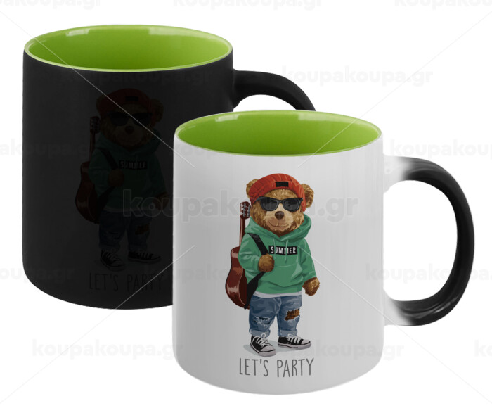 Let's Party Bear, Κούπα Μαγική εσωτερικό πράσινο, κεραμική 330ml που αλλάζει χρώμα με το ζεστό ρόφημα