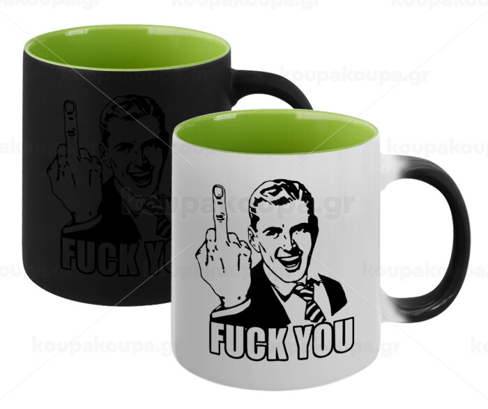 The finger, Κούπα Μαγική εσωτερικό πράσινο, κεραμική 330ml που αλλάζει χρώμα με το ζεστό ρόφημα