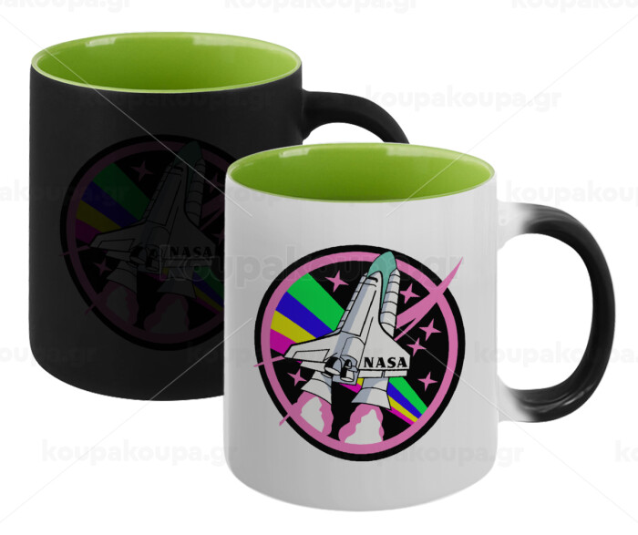 NASA pink, Κούπα Μαγική εσωτερικό πράσινο, κεραμική 330ml που αλλάζει χρώμα με το ζεστό ρόφημα