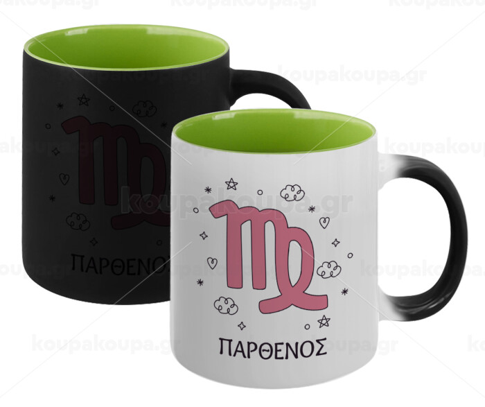 Ζώδια Παρθένος, Κούπα Μαγική εσωτερικό πράσινο, κεραμική 330ml που αλλάζει χρώμα με το ζεστό ρόφημα