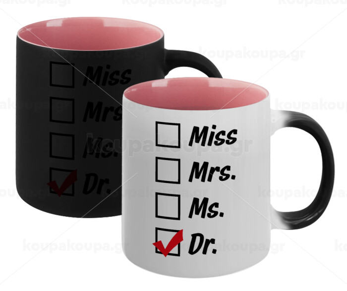Miss, Mrs, Ms, DR, Κούπα Μαγική εσωτερικό ΡΟΖ, κεραμική 330ml που αλλάζει χρώμα με το ζεστό ρόφημα
