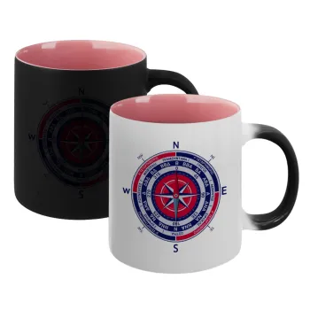 Wind compass, Κούπα Μαγική εσωτερικό ΡΟΖ, κεραμική 330ml που αλλάζει χρώμα με το ζεστό ρόφημα