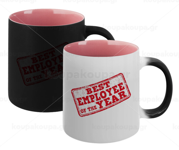 Best employee of the year, Κούπα Μαγική εσωτερικό ΡΟΖ, κεραμική 330ml που αλλάζει χρώμα με το ζεστό ρόφημα
