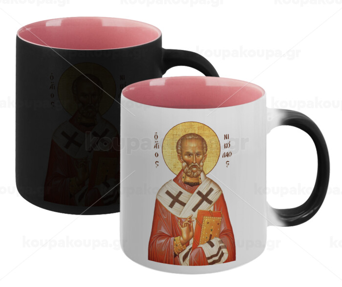 Saint Nicholas orthodox , Κούπα Μαγική εσωτερικό ΡΟΖ, κεραμική 330ml που αλλάζει χρώμα με το ζεστό ρόφημα