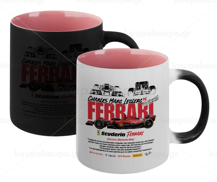 F1 Ferrari, Κούπα Μαγική εσωτερικό ΡΟΖ, κεραμική 330ml που αλλάζει χρώμα με το ζεστό ρόφημα