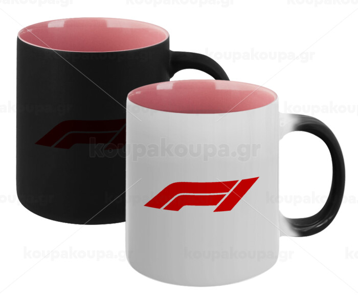 Formula 1, Κούπα Μαγική εσωτερικό ΡΟΖ, κεραμική 330ml που αλλάζει χρώμα με το ζεστό ρόφημα