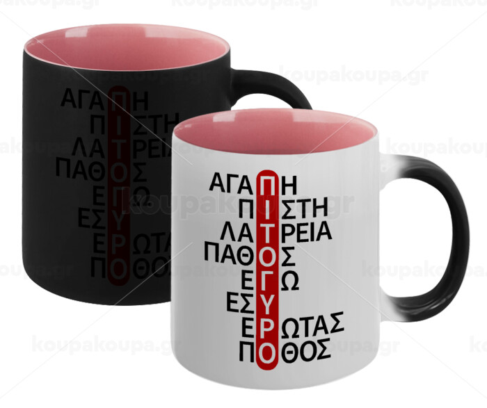 Πιτόγυρο πόθος, Κούπα Μαγική εσωτερικό ΡΟΖ, κεραμική 330ml που αλλάζει χρώμα με το ζεστό ρόφημα