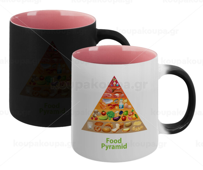 Food pyramid chart, Κούπα Μαγική εσωτερικό ΡΟΖ, κεραμική 330ml που αλλάζει χρώμα με το ζεστό ρόφημα