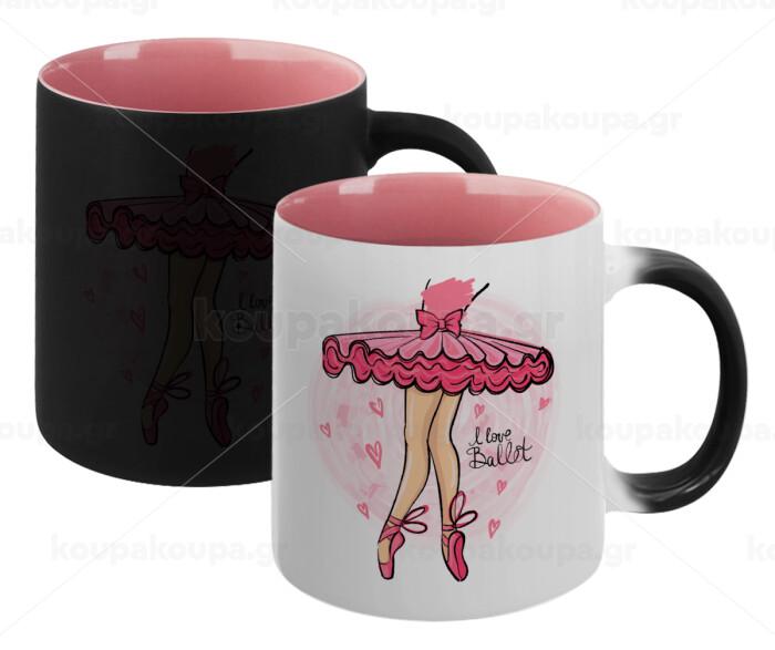 I Love Ballet, Κούπα Μαγική εσωτερικό ΡΟΖ, κεραμική 330ml που αλλάζει χρώμα με το ζεστό ρόφημα