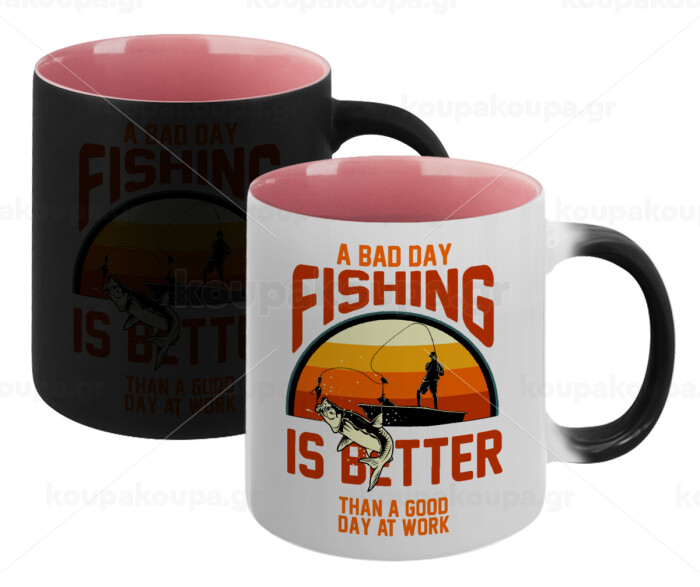 A bad day FISHING is better than a good day at work, Κούπα Μαγική εσωτερικό ΡΟΖ, κεραμική 330ml που αλλάζει χρώμα με το ζεστό ρόφημα
