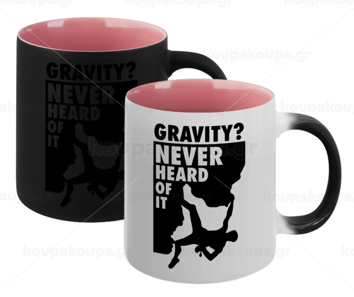 Gravity? Never heard of that!, Κούπα Μαγική εσωτερικό ΡΟΖ, κεραμική 330ml που αλλάζει χρώμα με το ζεστό ρόφημα